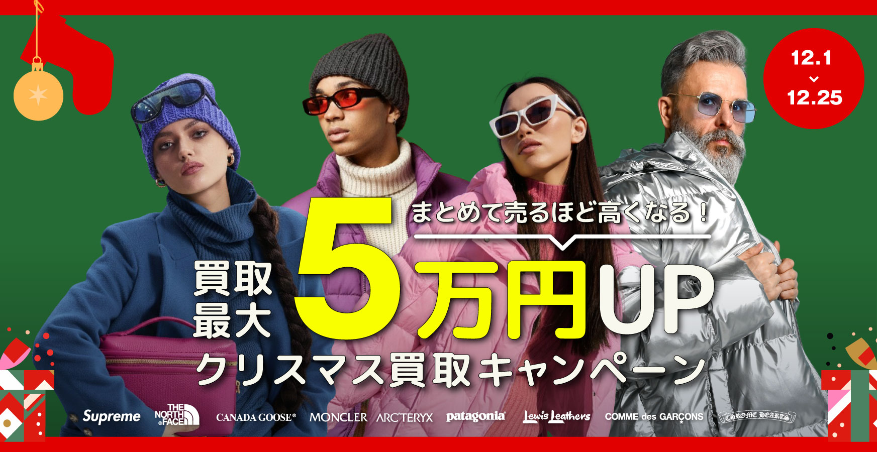 12月1日〜12月25日の期間中、買取成立点数に応じて買取金額を上乗せするクリスマス限定の特別プラスアップキャンペーンを開催します!